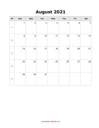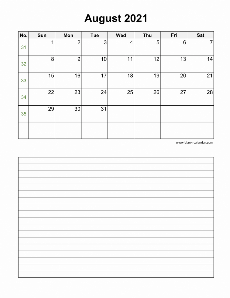 Download August 2021 Blank Calendar with Space for Notes (vertical)