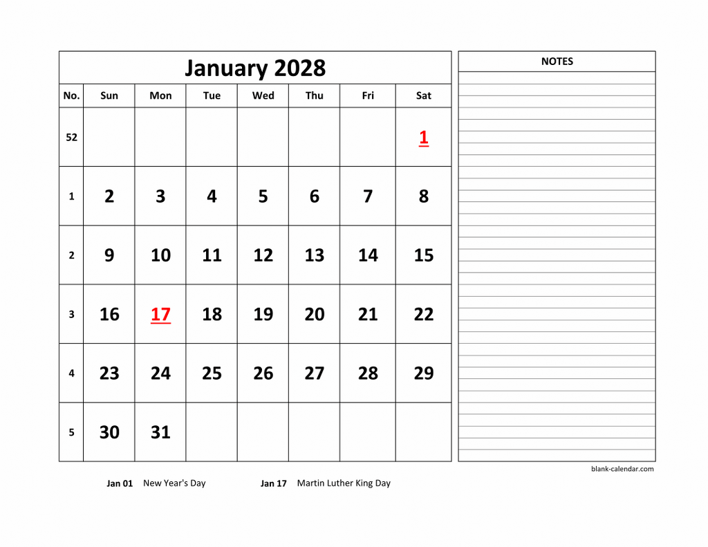 Free Download Printable Calendar 2028, large space for appointment and notes Free Download Printable Calendar 2028, large space for appointment and notes (12 pages, horizontal) Version: 2027 - 2028Week starts on Sunday Week starts on Monday Total Downloads: > 1,000 times ➤ See All Printable 2028 Calendars Related Printable 2028 CalendarsPrintable Calendar 2028, month in a column (two pages, half a year per page, horizontal)Printable Calendar 2028 with check boxes (12 pages, one month per page, horizontal)Printable Calendar 2028, pictures can be placed at the topPrintable Calendar 2028, large box, Federal Holidays listed, space for notes (12 pages, horizontal)Printable Calendar 2028, 3 months per page, 4 pages (vertical)